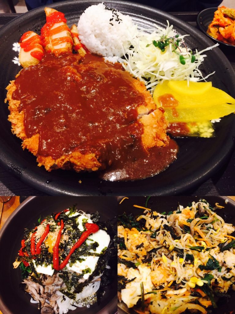 买完东西已经饿的不行了,就在超市里面的餐厅吃了午饭,我们点了全州拌饭和炸猪排乌冬套餐,看到menu我还是不自觉得换算,这个套餐多少钱,像着魔了一样,贵不贵都单说,就是想知道这个东西折合成人民币多少钱?这是什么毛病?