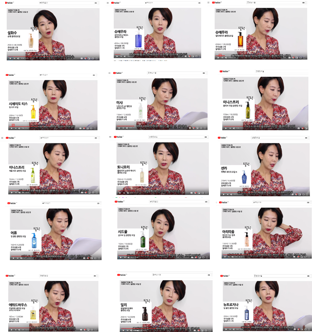 它们分别是:1.雪花秀,2. 植村秀蓝瓶,3.植村秀棕瓶,4.Tiss,5.谜尚,6. Innisfree橄榄油, 7. Innisfree苹果籽,8.Tolymoly, 9. 资生堂洗颜专科, 10. A’PIEU奥普,11.Sidmool,12. ARITAUM, 13. EtudeHouse伊蒂之屋,14. illi,15. 露得清