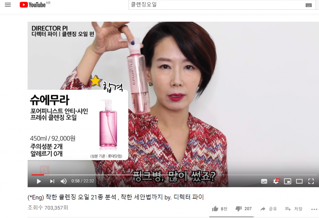 于是在youtube上开始查找各种关于好用的卸妆油的视频,发现我一直关注的Director PI姐姐有做相关的测评,她说话就像她的发型一样,利落简洁直击要害,我个人比较喜欢,专业出身也更值得信赖,很早之前她就开始测评各种产品。于是,深扒了她关于卸妆油的那期节目之后,用心(手动截屏)整理了一份学习笔记分享给大家。 首先从成分及成分配比上(她推荐天然植物油成分的,而且真的是用量排在前面作为有效成分才可以,还要排除各种对皮肤不是很友好的成分等等综合考虑)直接给出了答案:淘汰和合格,没有模棱两可,不废话,我就喜欢这样婶儿的。