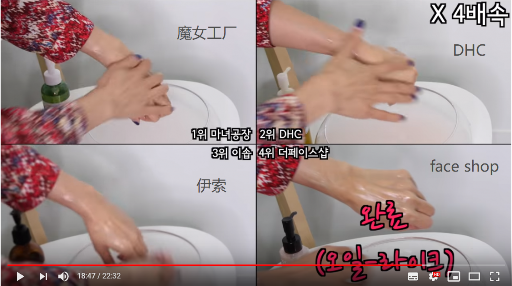 这款被PI姐姐描述为oil-like的产品,油的含量没有那么靠前但是乳化特别快,对比之下,这款清洁时所需时间最少,完胜其他第1、2、3位的产品。